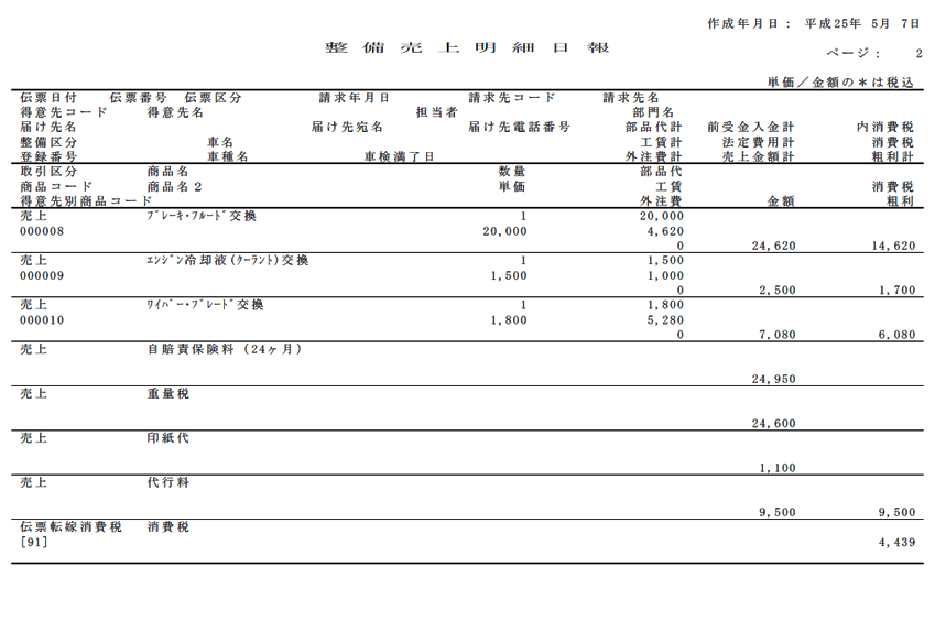 整備売上明細日報 得意先別整備売上明細日報 取引区分別売上日報 得意先別売上日報 商品別売上日報 担当者別売上日報 得意先分類別売上日報 得意先別商品別売上日報 商品別得意先別売上日報 担当者別得意先別売上日報 商品分類別売上日報 得意先別担当者別売上日報 部門別売上日報